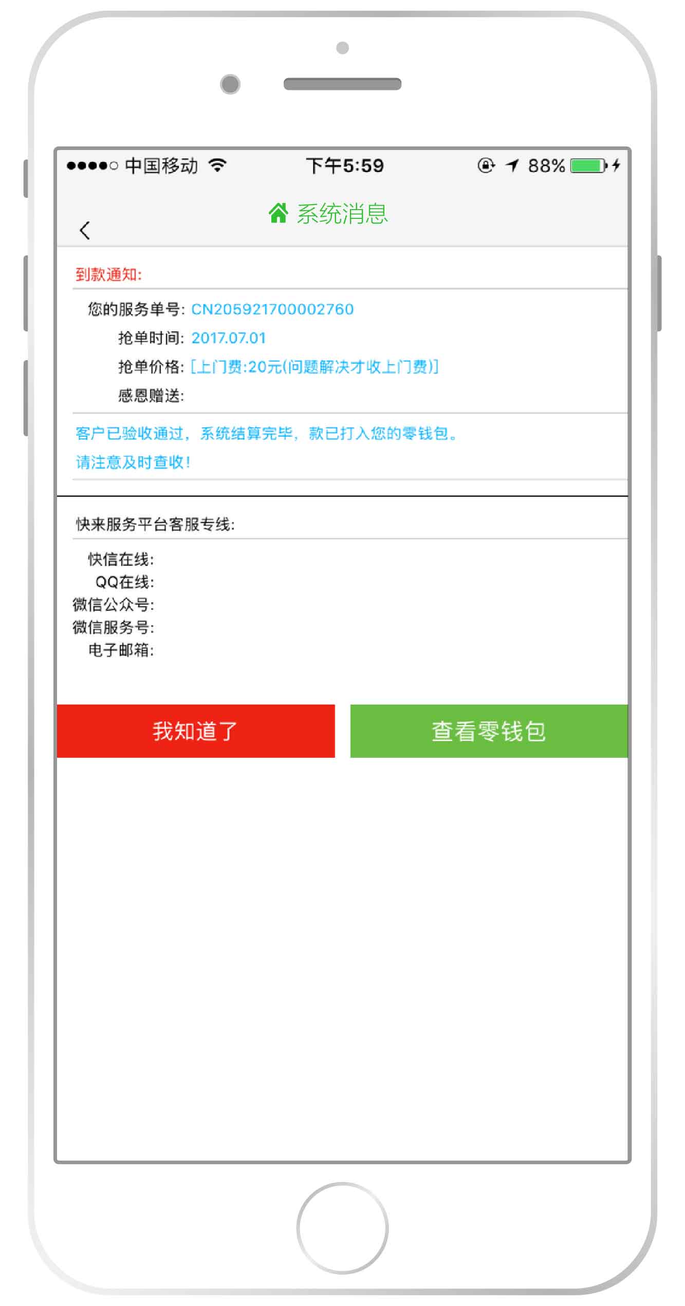 3.客户未及时验收但服务保质期到了,系统也会自动结算服务费用到单位(个人)零钱包中。
